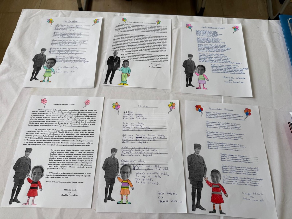 “Dilimizin Zenginlikleri” projesi kapsamında, öğrencilerimiz 23 Nisan temalı şiirler yazarak duygularını kaleme aldı. Şiirler sınıf panolarında sergilendi, öğrenciler Atatürk temalı pano önünde hatıra fotoğrafı çektirdi.